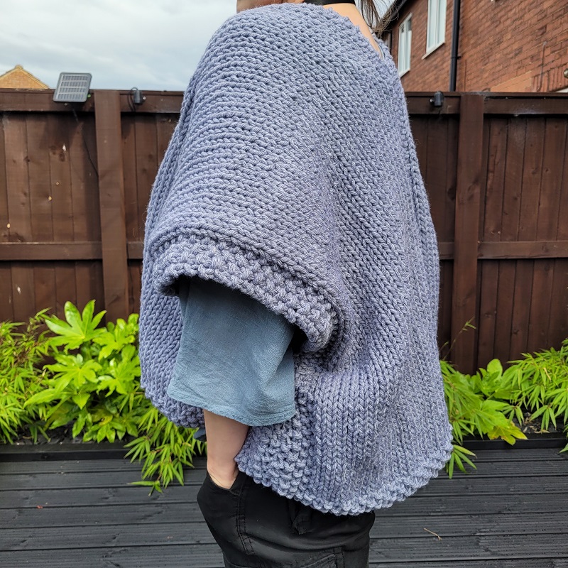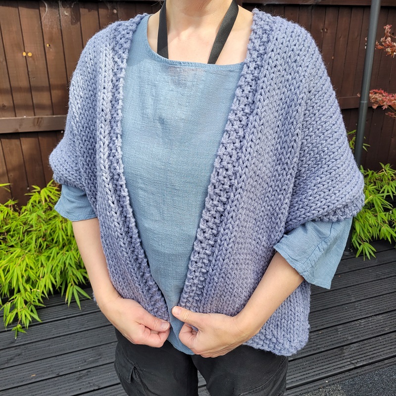 I’ve even test worn it for as long as I could bear it (it’s a bit warm to wear it for too long yet), it doesn’t seem to need any fastening, the front stays put and doesn’t slid off my shoulders pulling it open, so far so good. If it needs in future I might add on a couple of ties.